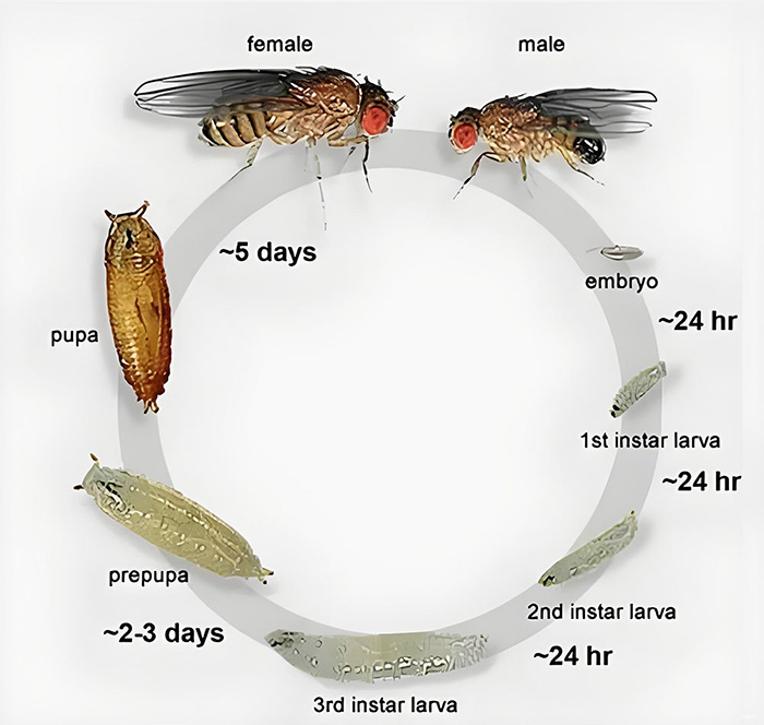 From Egg to Adult: The entire life cycle—from egg, to larva, to pupa, to adult—can be completed in about 8-10 days.
